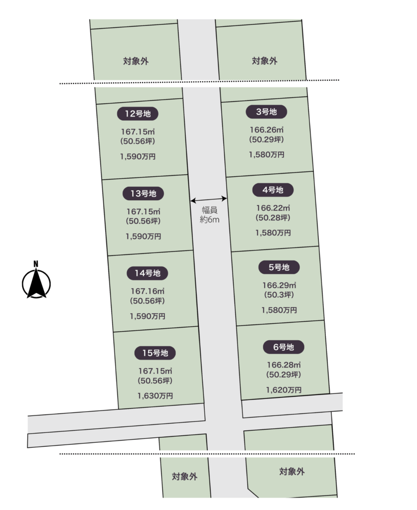 15号地 | 1,630万円 | 50.56 | 167.15 |